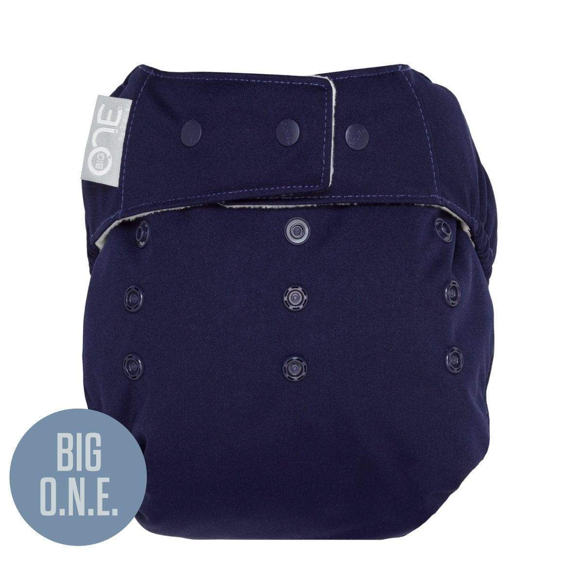 The Big O.N.E diaper is unique among cloth diaper all in ones (fits 35-70 pounds) because it comes with everything parents need to cloth diaper a larger toddler or older child. Enough absorbency to forget boosters and doublers (even overnight), two built-in closure options, and a heavy-duty construction that is built to last.